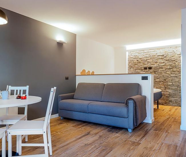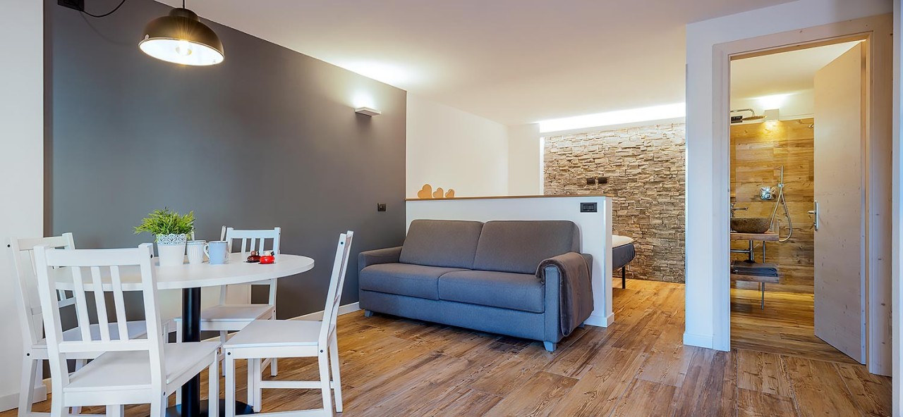 Il monolocale Rin da Rin si trova in una posizione tranquilla, accanto a un ruscello che scorre dolcemente. L’appartamento combina materiali naturali come il cirmolo e la pietra a vista, offrendo un ambiente accogliente e confortevole per due persone. Animali non ammessi in struttura.
